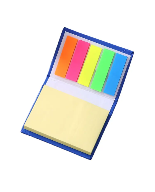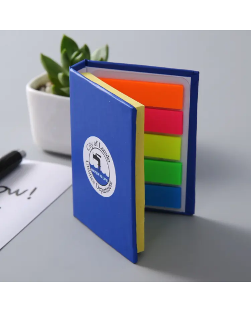 • Sticky book is made of paper with hard cover. It include 25 sheet per color flag stick & 70 sheet sticky note. Custom logo can be imprinted with all colors.