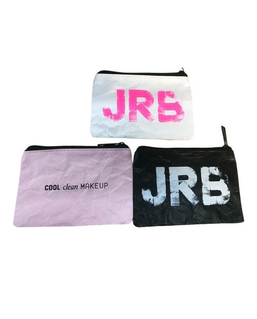 Tyvek zipper pouch made to keep your wet stuff separate and your dry stuff dry, so pack your bags!. Ultimate leak free make-up bag. Made out of a special technical material to keep your stuff protected against splashes, spills, and weather while you go from point A to point B. Use all day at the beach or pool, then take it out on the town to use as a cute clutch.
