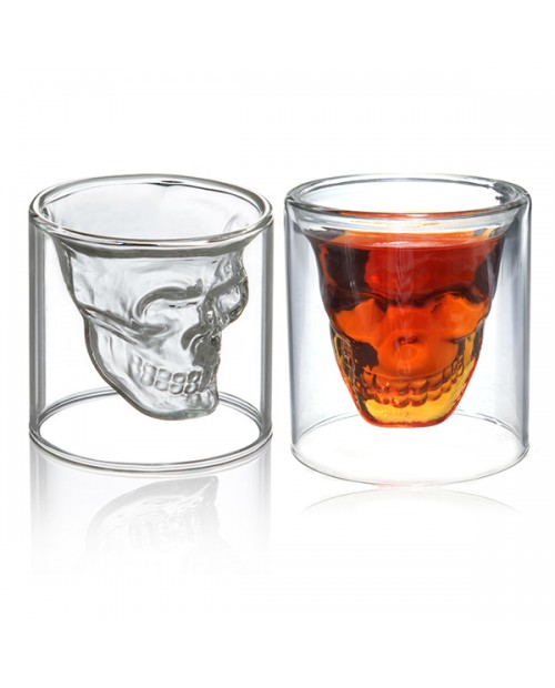 - This shot glass is in the shape of a skull. Crystal skull shot glass is used in bar, night club. It is double wall and heat resistant, suitable for hot or cold drink. Custom logo is available.