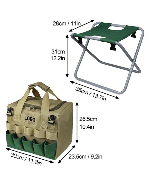 • All-in-one garden stool, including folding stool and gardening tote bag. Folding garden seat is made with a sturdy steel frame and durable oxford fabric for safe sitting. Lightweight and Lightweight: The Garden Stool with Tool Kit folds easily into a compact size of 15.7"x16.7"/40x42.5cm and weighs only 3lbs/1.4kg. Lightweight and portable, you can take it anywhere. Large compartment with 5 external pockets for easy access.