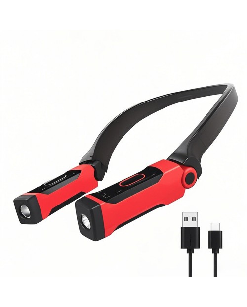 This USB-C rechargeable LED light featuresadjustable brightness, a detachable magnetic headfor metal surfaces, and flexible silicone neckband for hands-free use (wearable or mountable). Lasts 3-12 hrs (1hr charge) and includes afront flashlight. Ideal for camping, repairs, reading, or emergencies.