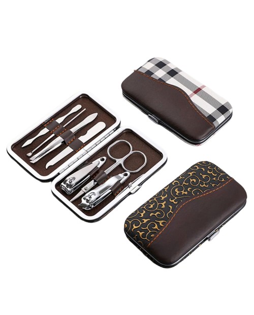 It is made of stainless steel and our nail set is equipped with a portable synthetic leather shell, which can be easily opened at the touch of a button. It's also very light, so you can take it with you every day or when you travel. Manicure, pedicure, eyebrow repair, acne removal, exfoliation, etc. can be completed in one set. There is room to imprint your logo. It's suitable for anyone. It's suitable for nail salons.
