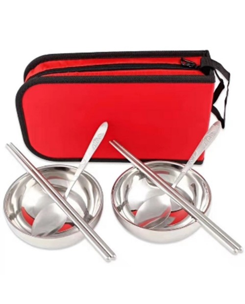 Cutlery set includes 2 pair of chopsticks, 2 pcs spoons & 2pcs bowls. It is packed into fabric zipper bag. Custom logo is available.