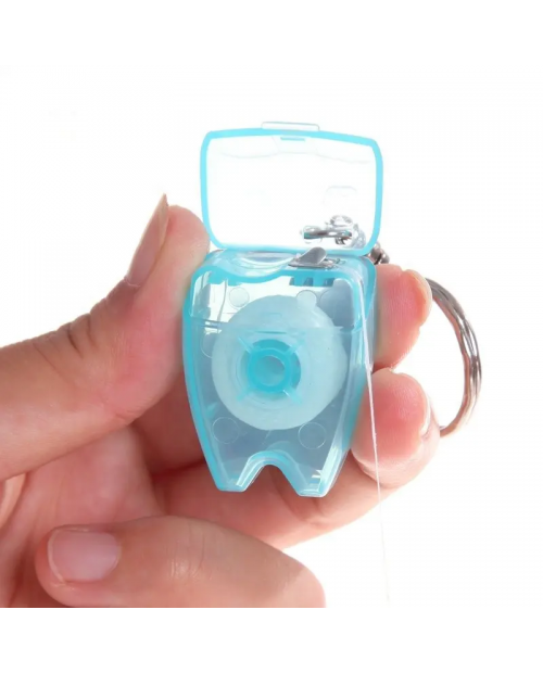 • Tooth shape dental floss keychain is made of plastic. It is easy to carry and use whenever needed. Custom logo is available.