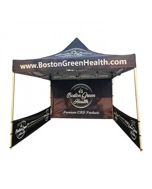 • Bleed dye sublimation canopy tent is made of 300D polyester and strong steel with back wall. It is waterproof and weather resistant. It is perfect for outdoor fun like camping, children's parties, or birthdays on any surface from the parking lot outside the stadium to the grass at the park. Custom logo can be imprinted with all colors.