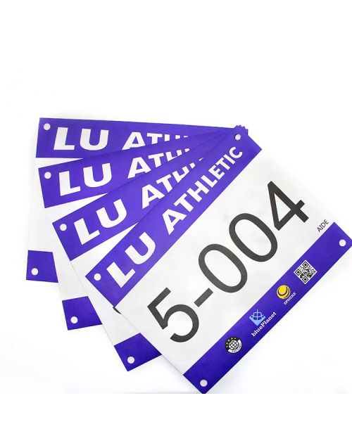 • Marathon race number is made of waterproof tyvek. It is a common accessory used in races, marathons, and other running events. Custom logo, color are available.